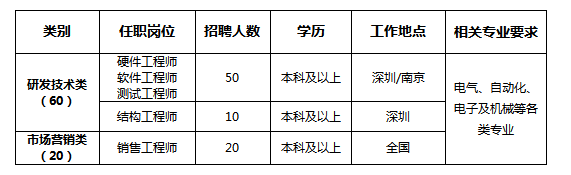 一、研发技术类(60人)a)电气类工程师(硬件工程师/软件工程师/测试工程师)(50人)